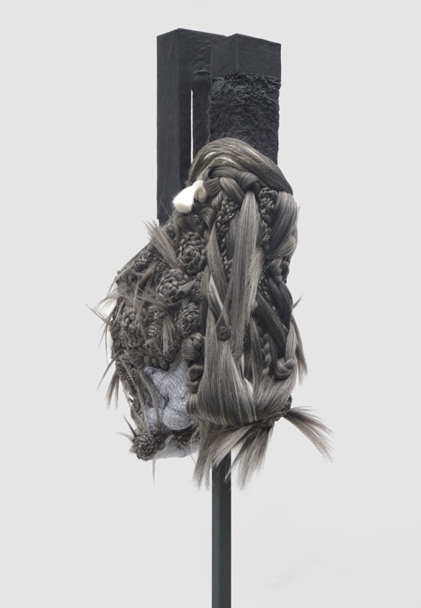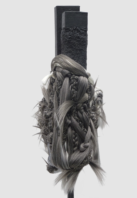 Stitched Hair, card, steel stand / 162 x 42 x 42cm