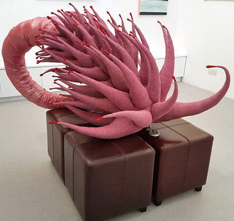 Crocheted yarn, Stitched fabric / 130 x 80cm